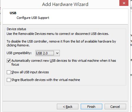 3.新增USB裝置,讓虛擬機用來存取手機裝置:在Hardware頁簽中選擇下方的Add...按鈕,跳出Add Hardware Wizard對話視窗,請選擇USB Controller後按Next,下一視窗若無需異動請按下Finish完成新增。