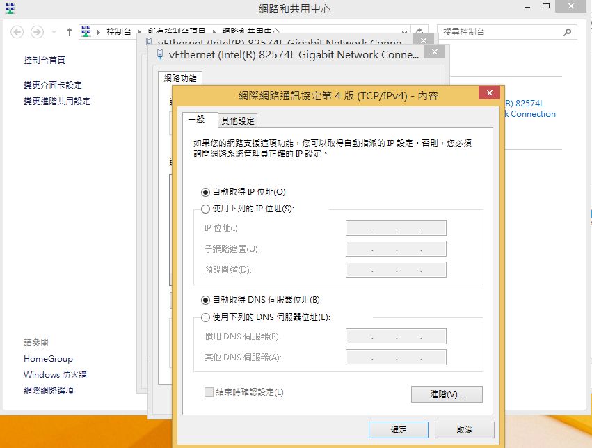 5.設定虛擬機內的網路:請將客端作業系統的網路改成自動取得IP位址與自動取得DNS伺服器位址,確定後開啟Chrome瀏覽器確認網路是否可用。